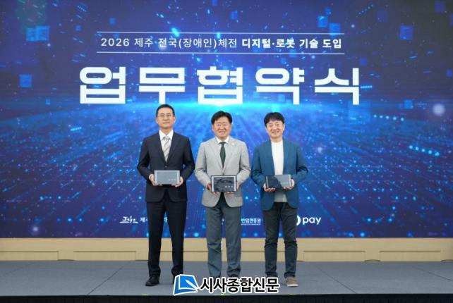 Á¦ÁÖµµ´Â 20ÀÏ ¿ÀÈÄ Á¦ÁÖ±¹Á¦ÄÁº¥¼Ç¼¾ÅÍ¿¡¼ ¿¸° ¡®Á¦107ȸ Àü±¹Ã¼À°´ëȸ ¹× Á¦46ȸ Àü±¹Àå¾ÖÀÎüÀ°´ëȸ Á¶Á÷À§¿øÈ¸ Ãâ¹ü½Ä¡¯¿¡¼ Çѱ¹·Îº¿»ê¾÷ÁøÈï¿ø, ³×À̹öÆäÀÌ¿Í ¡®µðÁöÅзΠÀ̾îÁø ½ºÆ÷Ã÷ÀÎ ´ëÃàÁ¦¸¦ ½ÇÇöÇϱâ À§ÇÑ ¾÷¹«Çù¾à¡¯À» ü°áÇß´Ù.