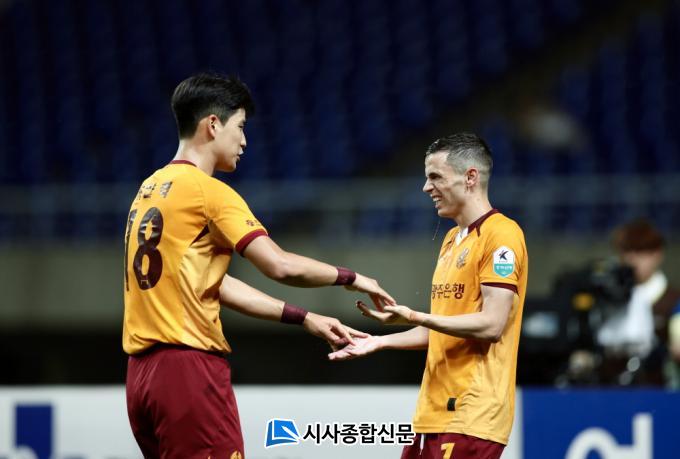 ÀÌÁ¤È¿ °¨µ¶Àº ½ÂÁ¡ 1Á¡À¸·Î ¸¸Á·ÇÏÁö ¾Ê¾Ò´Ù. °æ±â°¡ ¸·¹ÙÁö¿¡ Á¢¾îµé¾úÀ½¿¡µµ ¼±¼ö´Ü¿¡ Àü¹æÀ¸·Î ¶Ù¶ó´Â ¼ÕÁþÀ» ¹Ýº¹Çϸç Ȩ ÆÒµé¿¡°Ô ½ÂÁ¡ 3Á¡À» ¾È±â±â À§ÇØ ÃÖ¼±À» ´ÙÇß´Ù. ³¡±îÁö °á½Â°ñÀ» ³Ö°íÀÚ Çß´ø ±¤ÁÖÀÇ ÀÇÁö´Â ³¡³» ½Â¸®·Î À̾îÁöÁö ¾Ê¾Ò´Ù. ±×·³¿¡µµ ¸®±× 2À§ ´ëÀüÀ» »ó´ë·Î ½ÂÁ¡ 1Á¡À» ì±â¸ç ³²Àº ½ÃÁð¿¡ ´ëÇÑ ±â´ë°¨À» ³ôÀÌ´Â µ¥ ¼º°øÇß´Ù.