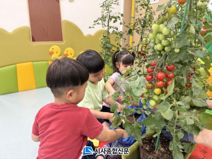 ¾ÆÀ̵éÀÌ ½Ä¹°À» Á÷Á¢ Ű¿ì¸ç ¼ºÀå °úÁ¤À» °üÂûÇÏ°í ¼öÈ®ÀÇ ±â»Ý±îÁö °æÇèÇÒ ¼ö ÀÖµµ·Ï ¡®Ã¼ÇèÇü ³ó¾÷ ±³À°¡¯À» ÁøÇàÇß´Ù.