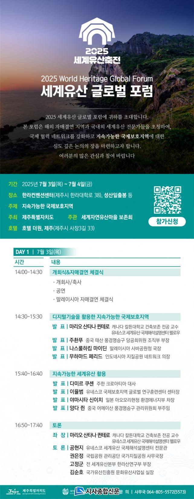 ÃàÀü Àü Çà»ç·Î 7¿ù 3ÀÏ ÇѶóÄÁº¥¼Ç¼¾ÅÍ¿¡¼ ¡®2025 ¼¼°èÀ¯»ê ±Û·Î¹ú Æ÷·³¡¯ÀÌ ¿¸°´Ù. ÇØ¿Ü ÀڸŰῬÁö¿ª µî 7°³±¹ ¼¼°èÀ¯»ê Àü¹®°¡ µî 100¿© ¸íÀÌ Âü¼®ÇØ ¡®µðÁöÅÐ ±â¼úÀ» Ȱ¿ëÇÑ Áö¼Ó°¡´ÉÇÑ ±¹Á¦º¸È£Áö¿ª¡¯, ¡®Áö¼Ó°¡´ÉÇÑ ¼¼°èÀ¯»ê Ȱ¿ë¡¯ ¼¼¼ÇÀ¸·Î ÁøÇàµÈ´Ù.