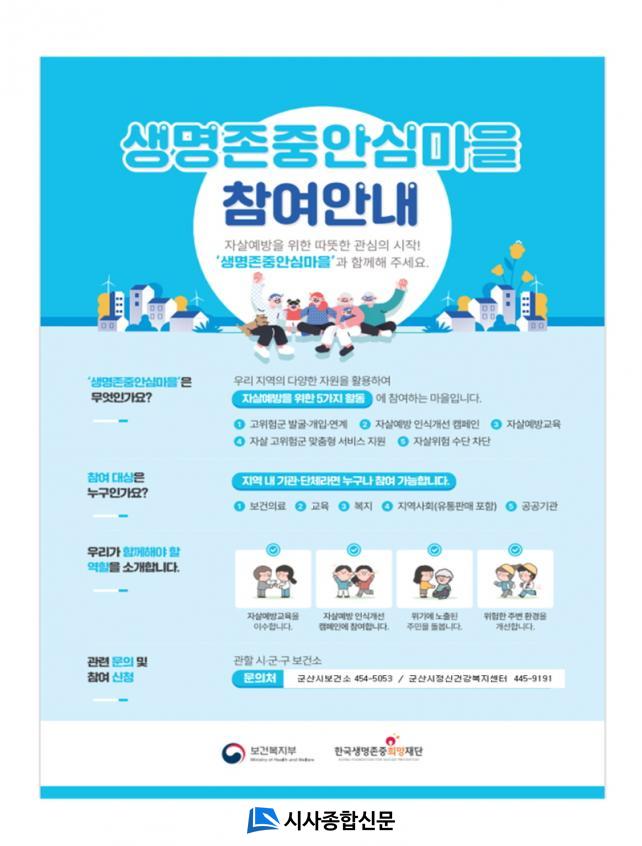 ÀÚ¼¼ÇÑ »çÇ×Àº ±º»ê½Ãº¸°Ç¼Ò(¢Ï063-454-5053) ¶Ç´Â ±º»ê½ÃÁ¤½Å°Ç°º¹Áö¼¾ÅÍ(¢Ï063-445-9191)·Î ¹®ÀÇÇÏ¸é µÈ´Ù.