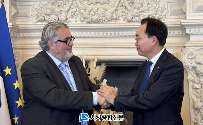 25ÀÏ¿¡´Â ÆÄ¸®¿¡ ÀÖ´Â ÁÖÇÁ¶û½º ´ëÇѹα¹´ë»ç°üÀ» ¹æ¹®ÇØ ¹®½ÂÇö ´ë»ç¿Í ¸¸³ª Ŭ·¹¸£·ÕÆä¶û½Ã¸¦ ºñ·ÔÇÑ ÇÁ¶û½º µµ½Ã¿ÍÀÇ Áö¼ÓÀûÀÎ ±³·ù È®´ë¿Í ÇѺҼö±³ 140Áֳ⠿¬°è»ç¾÷¿¡ ´ëÇÑ ¿Ü±³ ºÐ¾ß Çù·Â ¹æ¾ÈÀ» ³íÀÇÇß´Ù. ¶ÇÇÑ, 1851³â ÇÑºÒ Ã¹ ¸¸³²ÀÇ »ó¡ÀÎ ¡®¿Ë±âÁÖº´¡¯ÀÌ º¸°üµÈ ¼¼ºê¸£ ±¹¸³µµÀÚ±â¹Ú¹°°üÀ» ¹æ¹®ÇØ Àü½Ã Çù¾÷°ú °øµ¿ ÇмúÇà»ç ÃßÁø ¹æ¾È µîÀ» ÇùÀÇÇß´Ù.