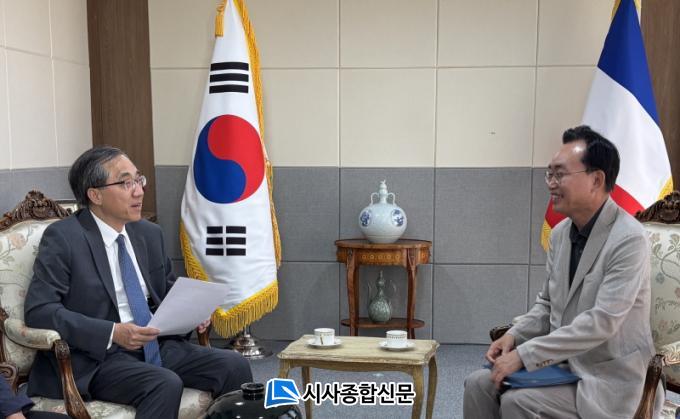 | À±º´Å ³ªÁÖ½ÃÀåÀº Áö³ 25ÀÏ ÁÖÇÁ¶û½º ´ëÇѹα¹´ë»ç°üÀ» ¹æ¹®ÇØ ¹®½ÂÇö ´ë»ç¿Í ¸¸³ª 2026³â ÇѺҼö±³ 140ÁÖ³âÀ» ¸Â¾Æ ÃßÁøµÇ´Â ´Ù¾çÇÑ ºÐ¾ßÀÇ Çà»ç¿¡ Àû±Ø Çù·ÂÇϱâ·Î Çß´Ù.(»çÁø Á¦°ø-³ªÁÖ½Ã) |