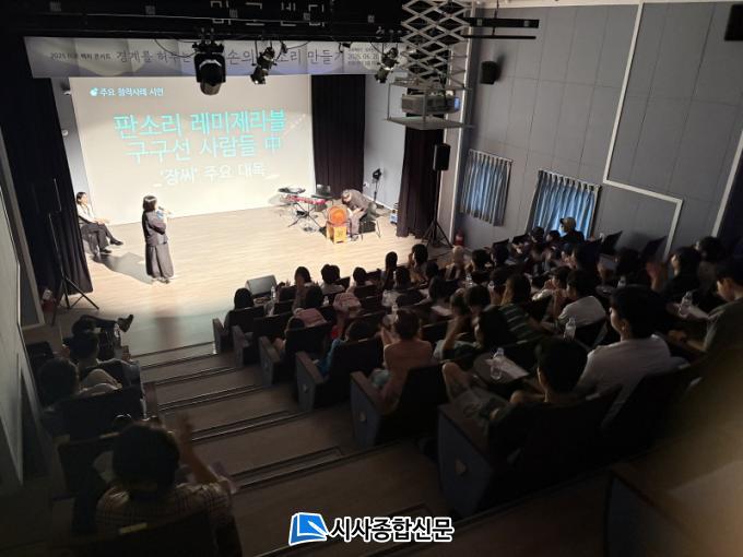 À̹ø ÄܼƮ´Â ÀüÅë ÆÇ¼Ò¸®¸¦ Çö´ëÀûÀ¸·Î ÀçÇØ¼®Çϸç ÁÖ¸ñ¹Þ°í ÀÖ´Â ¡®ÀÔ°ú¼Õ ½ºÆ©µð¿À¡¯°¡ Âü¿©, âÀÛ °úÁ¤°ú °ø¿¬À» ÇÔ²² ¼±º¸ÀÌ´Â ·ºÃ³ ÄܼƮ¸¦ ÁøÇàÇß´Ù. ÀÔ°ú¼Õ½ºÆ©µð¿À´Â ´ëÇ¥ ÀÛǰÀÇ ÁÖ¿ä Àå¸éÀ» ½Ç¿¬ÇÏ°í ±× Ã¢ÀÛ ¹è°æ°ú °úÁ¤¿¡ ´ëÇÑ »ý»ýÇÑ À̾߱⸦ µé·ÁÁÖ¸ç °ü°´µéÀÇ Å« È£ÀÀÀ» ¾ò¾ú´Ù.