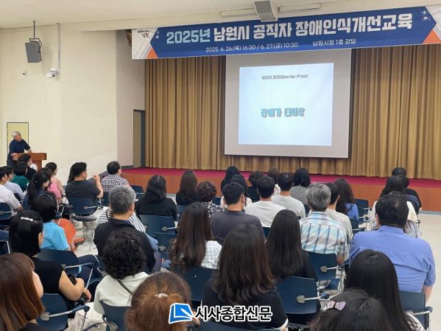 [½Ã»çÁ¾ÇսŹ® = ¿À½ÂÅà ±âÀÚ] ³²¿ø½Ã(½ÃÀå ÃÖ°æ½Ä)´Â 6¿ù 26ÀÏ(¸ñ) ½Ãû °´ç¿¡¼ °øÁ÷ÀÚ 200¸íÀ» ´ë»óÀ¸·Î ¡°Á÷Àå ³» Àå¾ÖÀÎ½Ä °³¼± ±³À°¡±À» ½Ç½ÃÇß´Ù.