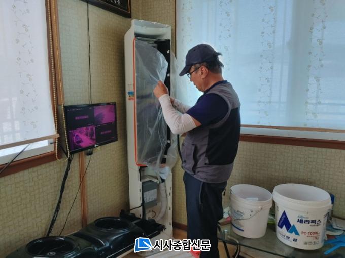 ÀÛ¾÷Àº ¿¡¾îÄÁ ÇÊÅ͸¦ °í¾Ð ¼¼Ã´±â·Î ¼¼Á¤ÇÏ´Â µî û¼Ò¡¤Á¡°ËÀÌ ÀÌ·ïÁö°í ÀÖ°í, ³Ã¹æ È¿À² Çâ»ó°ú ½Ç³» °ø±âÁú °³¼±µµ º´ÇàµÇ°í ÀÖ´Ù.
