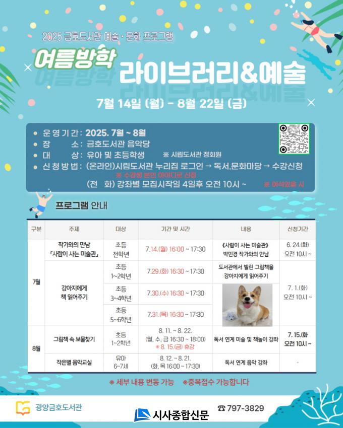 8¿ù¿¡´Â ±×¸²Ã¥°ú ÇÔ²²ÇÏ´Â µ¶¼ ±³½Ç°ú À½¾ÇÀ» ÅëÇÑ °¨¼º ¼ö¾÷ÀÌ ¸¶·ÃµÅ ÀÖ´Ù. Ãʵî ÀúÇгâÀ» ´ë»óÀ¸·Î ÇÑ ¡¸±×¸²Ã¥ ¼Ó º¸¹°Ã£±â¡¹´Â 8¿ù 11ÀϺÎÅÍ 22ÀϱîÁö ÃÑ 5ȸ¿¡ °ÉÃÄ ¿î¿µµÈ´Ù. ÇØ´ç ÇÁ·Î±×·¥Àº ±×¸²Ã¥À» ¹ÙÅÁÀ¸·Î ´Ù¾çÇÑ µ¶ÈÄ ¹Ì¼ú Ȱµ¿À» ÅëÇØ ÀڽŸ¸ÀÇ ¡®º¸¹°¡¯À» ¹ß°ßÇϰí âÀÇ·ÂÀ» ±â¸¦ ¼ö ÀÖ´Â ½Ã°£À¸·Î ±âȹµÆ´Ù.