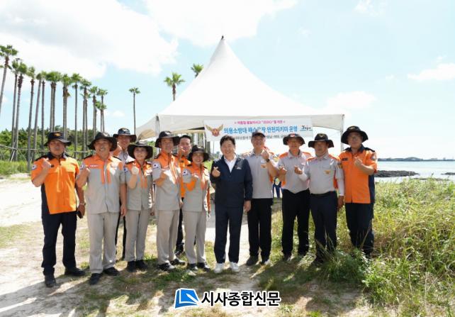 ¿À¿µÈÆ Áö»ç´Â ºñ¾çµµ¿¡¼ ÇùÀçÇØ¼ö¿åÀåÀ¸·Î À̵¿ÇØ ÇØ¼ö¿åÀå ¾ÈÀü°ü¸®¸¦ Ã¥ÀÓÁö°í ÀÖ´Â ¼Ò¹æ´ë¿ø°ú ÀÇ¿ë¼Ò¹æ´ë¿ø, ¾ÈÀü¿ä¿øµéÀ» ¸¸³ª °Ý·ÁÇϰí, ¿ÀÈÄ 3½ÃºÎÅÍ´Â ÇØ¼ö¿åÀå À̿밴µé°ú ÇÔ²² ¾²´ã´Þ¸®±â(Ç÷αë)¿¡ Âü¿©Çß´Ù.