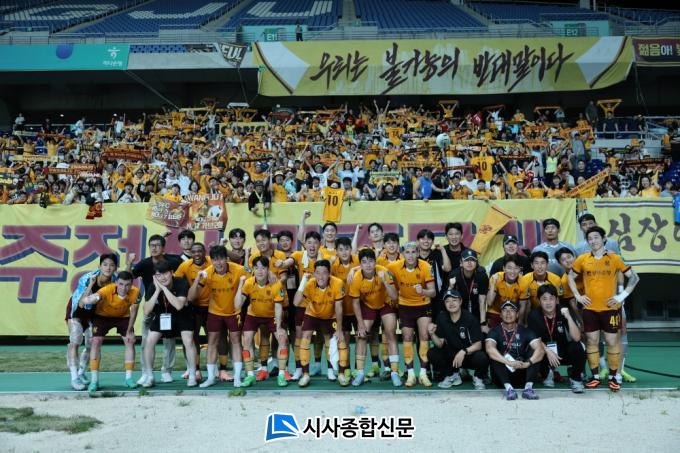 ÈÄ¹Ý Á¾·á°¡ ÀÓ¹ÚÇÏÀÚ ÇÑ °ñÀÌ Àý½ÇÇÑ ¿ï»êÀÌ »ç½Ç»ó Àü¿ø °ø°Ý¿¡ ³ª¼¹´Ù. ÃÖÈÄ¹æ ¼öºñ µÎ ¸í Á¤µµ¸¦ Á¦¿ÜÇϰï ÀüºÎ Àü¹æÀ¸·Î ¹èÄ¡Çß´Ù. ±×·¯³ª ºÎ»ó º¹±ÍÀüÀ» Ä¡¸¥ ±è°æ¹ÎÀ» ÇʵηΠÇÑ ±¤ÁÖÀÇ ¼öºñÁøÀº ³¡±îÁö ÁýÁß·ÂÀ» À¯ÁöÇØ ³»¸ç 1-0 ½ºÄÚ¾î·Î °æ±â¸¦ ¸ÅµìÁö¾ú´Ù. ÀÌ·Î½á ±¤ÁÖ´Â Áö³ÇØ ´ëȸ ¿ª»ç»ó ù 4° ÁøÃâ¿¡ À̾î 2³â ¿¬¼Ó Áذá½Â ¹«´ë¸¦ ¹â°Ô µÆ´Ù.