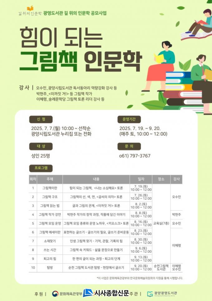 ¡®ÈûÀÌ µÇ´Â ±×¸²Ã¥ Àι®ÇС¯Àº ´Ü¼øÇÑ µ¶¼ Ȱµ¿À» ³Ñ¾î, ±×¸²Ã¥À» ÅëÇØ Àΰ£°ú »î, »çȸ, °ü°è¸¦ ±íÀÌ ÀÖ°Ô ¼ºÂûÇÏ°í ¼ÒÅëÀ» À̲ø¾î³»´Â ½Ã¹Î Âü¿©Çü Àι®ÇÐ ±³À° ÇÁ·Î±×·¥ÀÌ´Ù. º» ÇÁ·Î±×·¥Àº ±¤¾ç½Ã¸³µµ¼°üÀÌ ¹®ÈüÀ°°ü±¤ºÎ°¡ ÁÖÃÖÇϰí Çѱ¹¹®È¿¹¼úÀ§¿øÈ¸°¡ ÁÖ°üÇÏ´Â ¡®2025³â ±æ À§ÀÇ Àι®ÇС¯ °ø¸ð»ç¾÷¿¡ ¼±Á¤µÇ¸ç ±âȹµÆ´Ù.