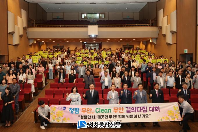 À̹ø °áÀÇ´ÙÁü ´ëȸ¿¡´Â ¹«¾È±º °øÁ÷ÀÚ 800¿©¸íÀÌ Âü¿©ÇØ ¹ý°ú ¿øÄ¢À» ÁöŰ´Â û·ÅÇÑ ÀÚ¼¼¿Í ±ú²ýÇϰí û°áÇÑ ¡®Å¬¸°¹«¾È¡¯À» Á¶¼ºÇϴµ¥ ¾ÕÀå¼°Ú´Ù´Â ½Çõ °áÀǹ®À» ³¶µ¶Çϰí Ä«µå¼½¼Ç ÆÛÆ÷¸Õ½º·Î ´ÙÁüÀ» °øÀ¯ÇÏ´Â ½Ã°£À» °¡Á³´Ù. ¿ÀÈÄ¿¡´Â 9°³ À¾¸é ÁÖ¿ä °¡·Îº¯¿¡¼ ¹«¾È±º Àü °øÁ÷ÀÚ°¡ Âü¿©Çϴ ȯ°æÁ¤ÈȰµ¿ÀÌ ÁøÇàµÆ´Ù.