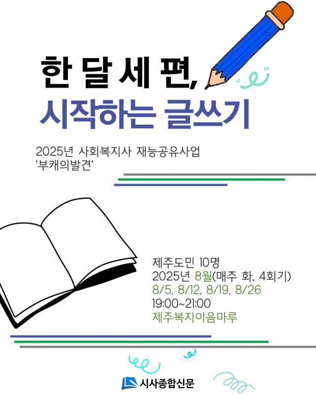 [½Ã»çÁ¾ÇսŹ® = °í¼º¹Î ±âÀÚ] Á¦ÁÖÆ¯º°ÀÚÄ¡µµ º¹ÁöÀÌÀ½¸¶·ç(Á¦ÁÖÆ¯º°ÀÚÄ¡µµ»çȸº¹Áö»çÇùȸ ¿î¿µ, ȸÀå Çã¼øÀÓ)´Â »çȸº¹Áö»ç Àç´É°øÀ¯¸¦ ÅëÇÑ ¹®È­¿©°¡ ÇÁ·Î±×·¥À» ¿î¿µÇÏ¸ç ¿À´Â 7¿ù 29ÀϱîÁö Âü¿©ÀÚ¸¦ ¸ðÁýÇÑ´Ù.