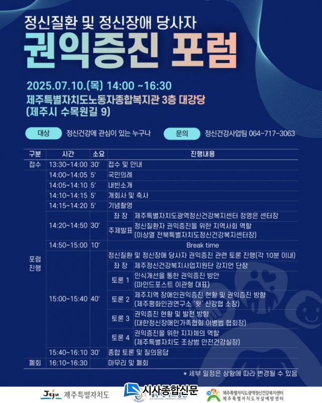 Á¦ÁÖÆ¯º°ÀÚÄ¡µµ±¤¿ªÁ¤½Å°Ç°º¹Áö¼¾ÅÍÀå(Á¤¿µÀº)Àº ¡°À̹ø Æ÷·³ÀÌ Á¤½ÅÁúȯ ¹× Á¤½ÅÀå¾Ö ´ç»çÀÚÀÇ ±ÇÀÍÁõÁø ¹æ¾È ¸¶·Ã°ú Á¤½Å°Ç°¹®Á¦¿¡ ´ëÇÑ ¾ÈÀüÇÑ Áö¿ª»çȸ ȯ°æ Á¶¼º¿¡ ¹ßÀüÀû °è±â°¡ µÉ °ÍÀÌ´Ù¡±°í ¸»Çß´Ù.