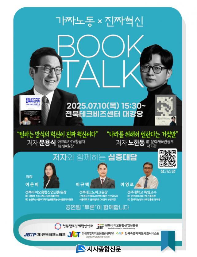 ÀüºÏƯº°ÀÚÄ¡µµ¹®È°ü±¤Àç´Ü(´ëÇ¥ÀÌ»ç À̰æÀ±, ÀÌÇÏ Àç´Ü), ÀüºÏ¹ÙÀÌ¿ÀÀ¶ÇÕ»ê¾÷ÁøÈï¿ø(¿øÀå ÀÌÀº¹Ì), ÀüºÏÅ×Å©³ëÆÄÅ©(¿øÀå À̱ÔÅÃ), ÀüºÏâÁ¶°æÁ¦Çõ½Å¼¾ÅÍ(´ëÇ¥ÀÌ»ç °¿µÀç), ÀüºÏƯº°ÀÚÄ¡µµ»çȸ¼ºñ½º¿ø(¿øÀå ¼¾ç¿) 5°³ ±â°üÀº ¿À´Â 7¿ù 10ÀÏ(¸ñ) ¿ÀÈÄ 3½Ã 30ºÐ, ÀüºÏÅ×Å©ºñÁî¼¾ÅÍ 1Ãþ ´ë°´ç¿¡¼ ¡®°¡Â¥³ëµ¿ ¡¿ ÁøÂ¥Çõ½Å BOOK TALK¡¯¸¦ °øµ¿ °³ÃÖÇÑ´Ù.