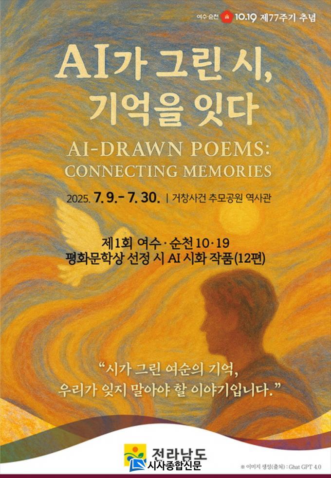 ½ÃÈÀüÀº ¡®Á¦1ȸ ¿©¼ö¡¤¼øÃµ 10¡¤19 Æòȹ®ÇÐ»ó¡¯ ¼ö»óÀÛ Áß ½Ã°¢È°¡ °¡´ÉÇÑ 12ÆíÀÇ ½Ã¸¦ ¼±Á¤ÇØ, ¿©¼ø»ç°ÇÁö¿ø´Ü °ø¹«¿øÀÌ ÀΰøÁö´É(AI) À̹ÌÁö »ý¼º ±â¼úÀ» Ȱ¿ëÇØ ½ÃÀÇ °¨Á¤°ú ºÐÀ§±â¸¦ ½Ã°¢ÀûÀ¸·Î »ý¼ºÇÑ ÀÛǰÀÌ´Ù.
