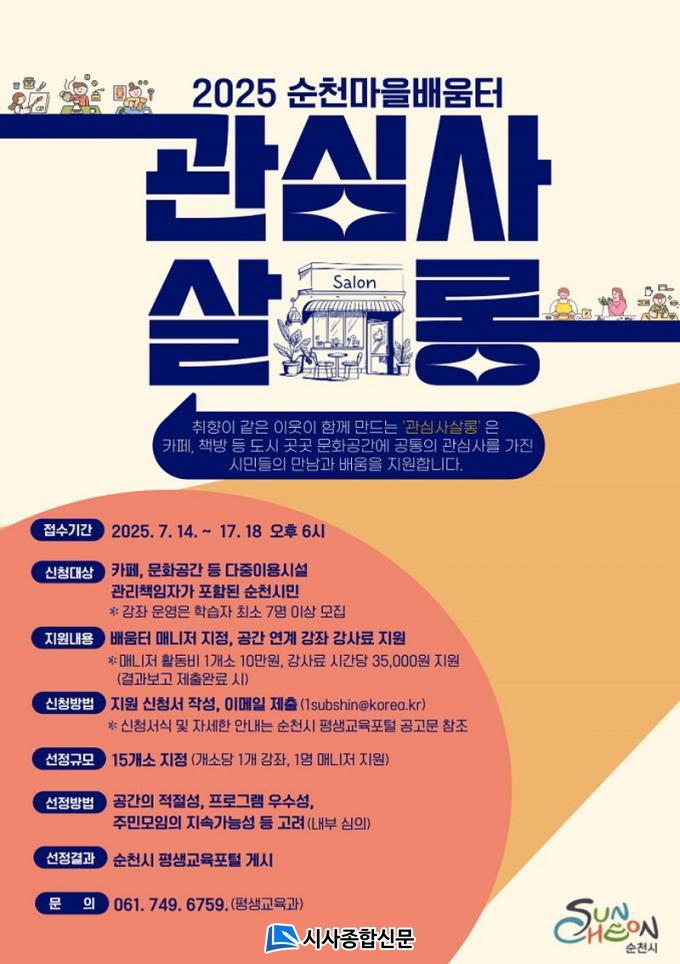½Åû ±â°£Àº ¿À´Â 14ÀϺÎÅÍ 18ÀϱîÁöÀ̸ç, ¼øÃµ½Ã Æò»ý±³À°Æ÷ÅÐ(https://lms.schc.go.kr) ³» °øÁö»çÇ׿¡¼ ÀÚ¼¼ÇÑ ³»¿ëÀ» È®ÀÎÇÒ ¼ö ÀÖ´Ù. ½Ã´Â ½É»ç¸¦ °ÅÃÄ ÃÑ 15°³¼Ò ³»¿Ü¸¦ ¼±Á¤ÇØ Áö¿øÇÒ °èȹÀÌ´Ù.