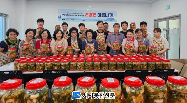 À̳¯ ºÀ»çȰµ¿¿¡ Âü¿©ÇÑ µðµõµ¹ºÀ»ç´Ü°ú ºÎ¾ÈJCȸ¿ø 20¿© ¸íÀº ¹«´õ¿î ¿©¸§Ã¶À» ¸Â¾Æ ÀÌ¿ôµéÀÇ °Ç°ÇÑ ½Ä»ýȰÀ» À§ÇØ Á¤¼º½º·´°Ô ´ã±Ù ¿¹«¹°±èÄ¡¸¦ ÇѺθð°¡Á¤, Á¶¼Õ°¡Á¤ µî 150¼¼´ë¿¡ Àü´ÞÇß´Ù.