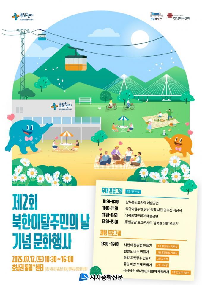 ÁÖ¿ä ÇÁ·Î±×·¥Àº ¡ã¡®ºÏÇÑÀÌÅ»ÁֹΠÀü³² Á¤Âø »çÁø °ø¸ðÀü¡¯ ½Ã»ó½Ä ¡ãÅ»ºÏ ¿¹¼úÀÎ °ø¿¬ ¡ã¡®³²ºÏÇÑ »ýȰ ¿³º¸±â¡¯ ÅëÀϰø°¨ ÅäÅ©ÄܼƮ µîÀÌ´Ù. Çѹݵµ ºñ´©, ÅëÀÏ Æ÷ÄÏ Çâ¼ö, ³ª¸¸ÀÇ ÅëÀÏÄÅ ¸¸µé±â µî ´Ù¾çÇÑ Ã¼Çè ºÎ½ºµµ ¿î¿µÇÑ´Ù.