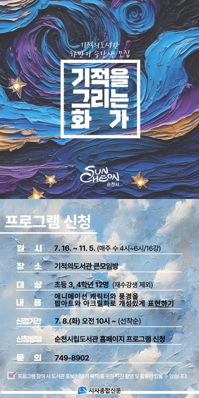 À̹ø ÇϹݱâ ÇÁ·Î±×·¥Àº ÃʵîÇб³ 3~4Çгâ 12¸íÀ» ´ë»óÀ¸·Î Çϸç, ¾Ö´Ï¸ÞÀÌ¼Ç Ä³¸¯ÅÍ¿Í ¼øÃµÀÇ Ç³°æÀ» ÆË¾ÆÆ® ±â¹ý°ú ¾ÆÅ©¸±È¸¦ Ȱ¿ëÇÑ Ã¢ÀÛ È°µ¿À¸·Î ±¸¼ºµÈ´Ù.