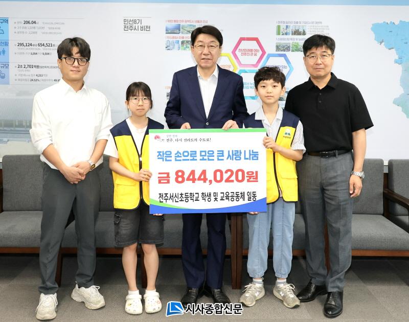 ÀüÁÖ¼½ÅÃʵîÇб³(±³Àå À̳°æ) ÇлýµéÀº 14ÀÏ ÀüÁÖ½ÃÀå½ÇÀ» ¹æ¹®ÇØ ÇлýµéÀÌ ³ª´® Çà»ç¸¦ ÅëÇØ Á÷Á¢ ¸¶·ÃÇÑ ¼º±Ý 84¸¸4020¿øÀ» Àü´ÞÇß´Ù.