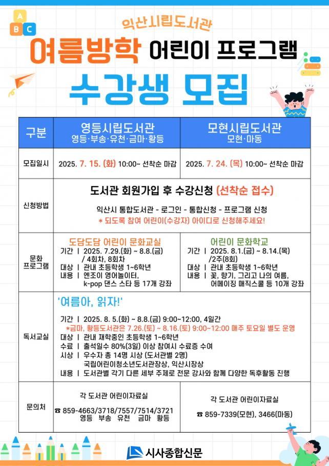 ÀÍ»ê½Ã °ü°èÀÚ´Â "À̹ø ÇÁ·Î±×·¥ÀÌ ¾î¸°À̵鿡°Ô Ã¥ ÀбâÀÇ Áñ°Å¿ò°ú ´Ù¾çÇÑ ¹®ÈüÇèÀÇ ±âȸ¸¦ Á¦°øÇÒ °ÍÀ¸·Î ±â´ëÇÑ´Ù"¸ç "µµ¼°ü¿¡¼ ÀÇ¹Ì ÀÖ°í ½½±â·Î¿î ¿©¸§¹æÇÐÀ» º¸³¾ ¼ö ÀÖµµ·Ï ¿î¿µ¿¡ ÃÖ¼±À» ´ÙÇϰڴÙ"°í ÀüÇß´Ù.