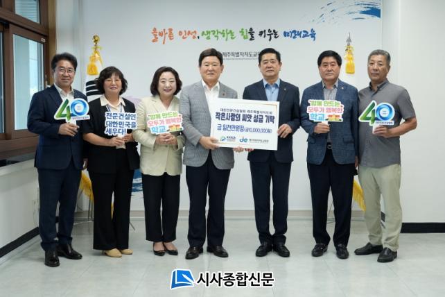 [½Ã»çÁ¾ÇսŹ® = °í¼º¹Î ±âÀÚ] ´ëÇÑÀü¹®°Ç¼³Çùȸ Á¦ÁÖÆ¯º°ÀÚÄ¡µµÈ¸(ȸÀå ¹é»óÈÆ)´Â Áö³ 14ÀÏ¡®ÀÛÀº »ç¶ûÀÇ ¾¾¾Ñ¡¯¼º±ÝÀ¸·Î Á¦ÁÖÆ¯º°ÀÚÄ¡µµ±³À°Ã»(±³À°°¨ ±è±¤¼ö)¿¡ 1000¸¸¿øÀ» ±âŹÇß´Ù.