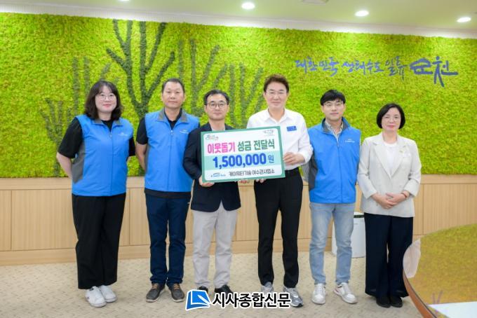 [½Ã»çÁ¾ÇսŹ® = Àå¹Î±Ô ±âÀÚ] ¼øÃµ½Ã(½ÃÀå ³ë°ü±Ô)´Â Áö³ 16ÀÏ K-water±â¼ú ¿©¼ö±Ç»ç¾÷¼Ò(¼ÒÀå °Áø¼º)¿¡¼ ÀÌ¿ôµ½±â ¼º±Ý 150¸¸¿øÀ» ±âºÎÇß´Ù°í ¹àÇû´Ù.
