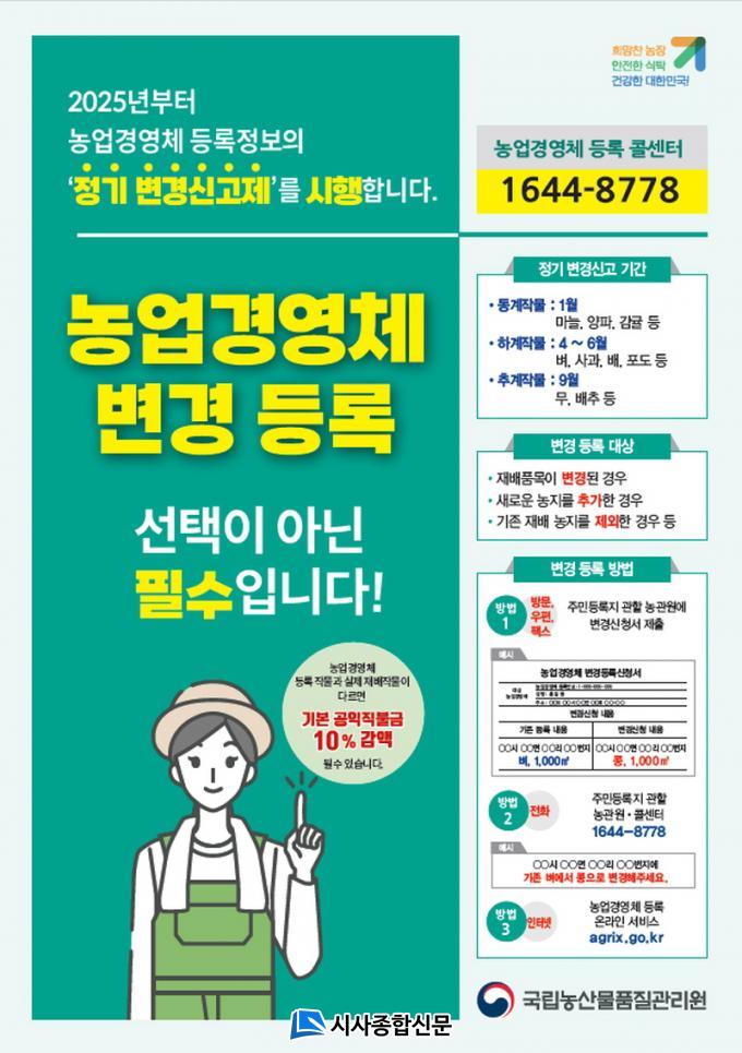 ³ó¾÷°æ¿µÃ¼ µî·Ï ³ó¾÷ÀÎÀº °øÀÍÁ÷ºÒ±Ý µî ³ó¾÷ °ü·Ã À¶ÀÚ‧º¸Á¶±Ý ÇýÅÃÀ» ¹Þ´Â ´ë½Å Àç¹èǰ¸ñ¡¤³óÁö µîÀÌ º¯°æµÉ °æ¿ì ¹Ýµå½Ã ³ó°ü¿ø¿¡ º¯°æ½Å°í¸¦ ÇØ¾ß ÇÏ´Â Àǹ«°¡ ÀÖ´Ù. ÇÏÁö¸¸ ³ó¾÷ÀÎÀÌ ¹Ù»Û ¿µ³óȰµ¿°ú ÀÎ½Ä ºÎÁ·À¸·Î Á¦¶§ º¯°æµî·ÏÀ» ÇÏÁö ¾Ê¾Æ ³ó¸²Áö¿ø »ç¾÷¿¡¼ ¹èÁ¦µÇ´Â ºÒÀÌÀÍÀ» ¹ÞÀ» ¿ì·Á°¡ ÀÖ°í, ¾ÕÀ¸·Î ÀΰøÁö´É(AI)À» Ȱ¿ëÇÑ ºòµ¥ÀÌÅÍ ±â¹ÝÀÇ ³óÁ¤¹ßÀü ¹æ¾ÈÀ» ¸¶·ÃÇÏ·Á¸é µî·ÏÁ¤º¸ÀÇ Á¤È®µµ¸¦ º¸´Ù ³ô¿©¾ß ÇÏ´Â »óȲÀÌ´Ù.