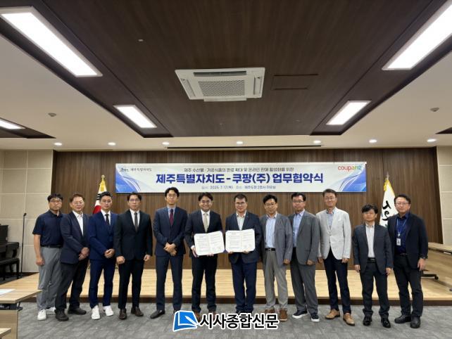 Á¦ÁÖµµ´Â 17ÀÏ ¿ÀÈÄ 1½Ã µµÃ» Á¦2û»ç ÀÚÀ¯½Ç¿¡¼ ÄíÆÎ°ú ¡®Á¦ÁÖ ¼ö»ê¹° ÆÇ·Î È®´ë ¹× ¿Â¶óÀÎ ÆÇ¸Å Ȱ¼ºÈ¸¦ À§ÇÑ ¾÷¹«Çù¾à¡¯À» ü°áÇß´Ù. Çù¾à¿¡ µû¶ó Á¦ÁÖ Ã»Á¤ ¼ö»ê¹°ÀÌ ÄíÆÎÀÇ »õº®¹è¼Û ¼ºñ½ºÀÎ ·ÎÄÏÇÁ·¹½Ã¸¦ ÅëÇØ Àü±¹ ¼ÒºñÀÚ¿¡°Ô ºü¸£°í ½Å¼±ÇÏ°Ô °ø±ÞµÈ´Ù.