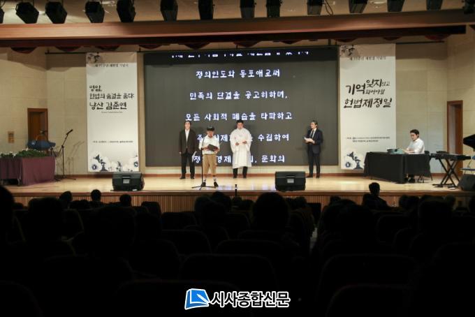 ¿¬±Ø¿¡¼´Â Çå¹ý ÃʾÈÀ» ³õ°í ¿¶í Åä·ÐÀ» ¹úÀ̰í, 1948³â 7¿ù 17ÀÏ Çå¹ýÀ» °øÆ÷ÇÏ´Â ³¶»ê ¼±»ýÀÇ ¸ð½ÀÀÌ ¿¬ÃâµÅ ´ç½ÃÀÇ ¿Á¤À» ÇöÀç¿¡ ÀüÇß´Ù.