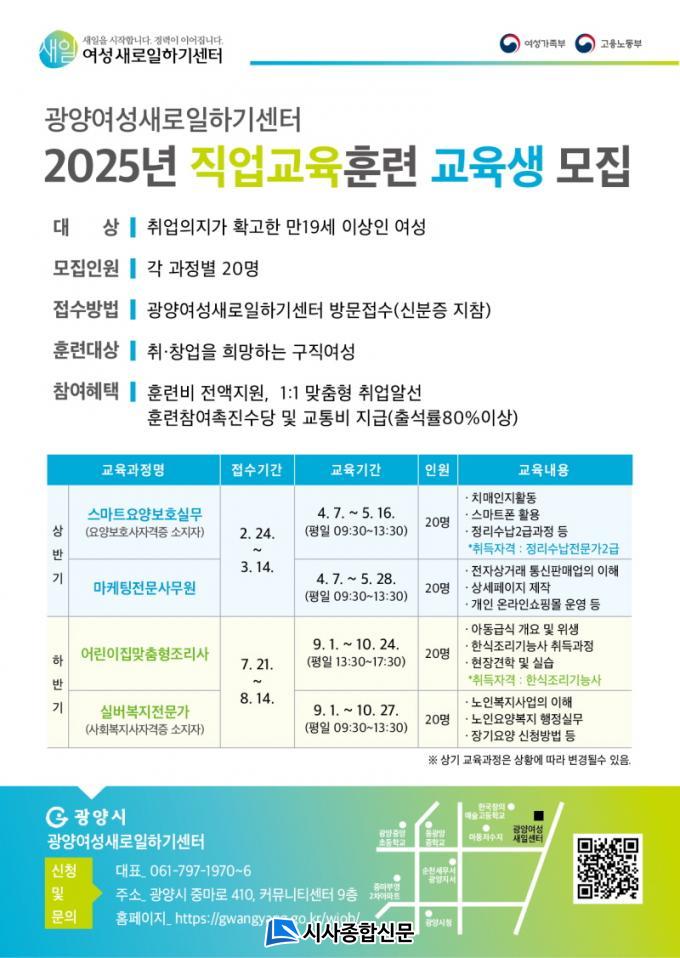 2025³â ÇϹݱ⿡´Â ¡ã¾î¸°ÀÌÁý¸ÂÃãÇüÁ¶¸®»ç °úÁ¤(9¿ù 1ÀÏ~10¿ù 24ÀÏ)°ú ¡ã½Ç¹öº¹ÁöÀü¹®°¡ °úÁ¤(9¿ù 1ÀÏ~10¿ù 27ÀÏ) ÃÑ 2°³ °úÁ¤ÀÌ ¿î¿µµÈ´Ù. ¸ðµç °úÁ¤Àº Àü¾× ±¹ºñ·Î ¿î¿µµÅ ±³À°ºñ ºÎ´ã ¾øÀÌ Âü¿©ÇÒ ¼ö ÀÖ´Ù.