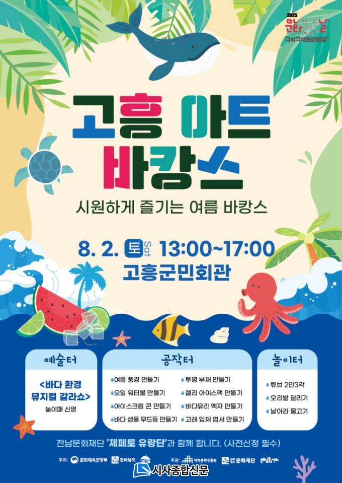ÇÑÆí, ¡®¹®È°¡ ÀÖ´Â ³¯ ±¸¼®±¸¼® ¹®È¹è´Þ¡¯Àº ¹®ÈüÀ°°ü±¤ºÎ, Àü¶ó³²µµ, °íÈﱺÀÌ ÁÖÃÖÇϰí, Áö¿ª¹®ÈÁøÈï¿ø, Àü³²¹®ÈÀç´Ü, °íÈﱺ ¹®Èµµ½Ã¼¾ÅͰ¡ ÁÖ°üÇϸç, ¡®¹®È°¡ ÀÖ´Â ³¯¡¯ ÁÖ°£À» Áß½ÉÀ¸·Î ±º¹ÎµéÀÌ ¹®È¿¹¼úÀ» ´õ °¡±îÀ̼ Áñ±æ ¼ö ÀÖµµ·Ï Áö¿øÇϰí ÀÖ´Ù.