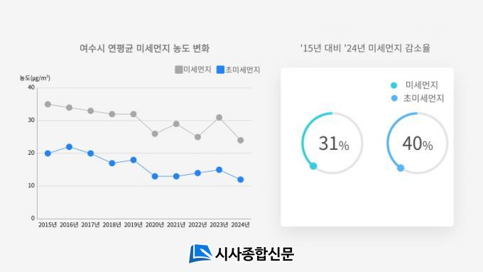 2024³â ¿©¼ö½ÃÀÇ ¿¬Æò±Õ ¹Ì¼¼¸ÕÁö(PM-10) ³óµµ´Â 24§¶/§©, Ãʹ̼¼¸ÕÁö(PM-2.5)´Â 12§¶/§©·Î ÃÖ±Ù 10³â°£ ÃøÁ¤ ÀÌ·¡ °¡Àå ³·Àº ¼öÄ¡¸¦ ±â·ÏÇß´Ù. ÀÌ´Â 2015³â ´ëºñ °¢°¢ 31.4%(35 ¡æ 24§¶/§©), 40%(20 ¡æ 12§¶/§©) °¨¼ÒÇÑ ¼öÄ¡´Ù.