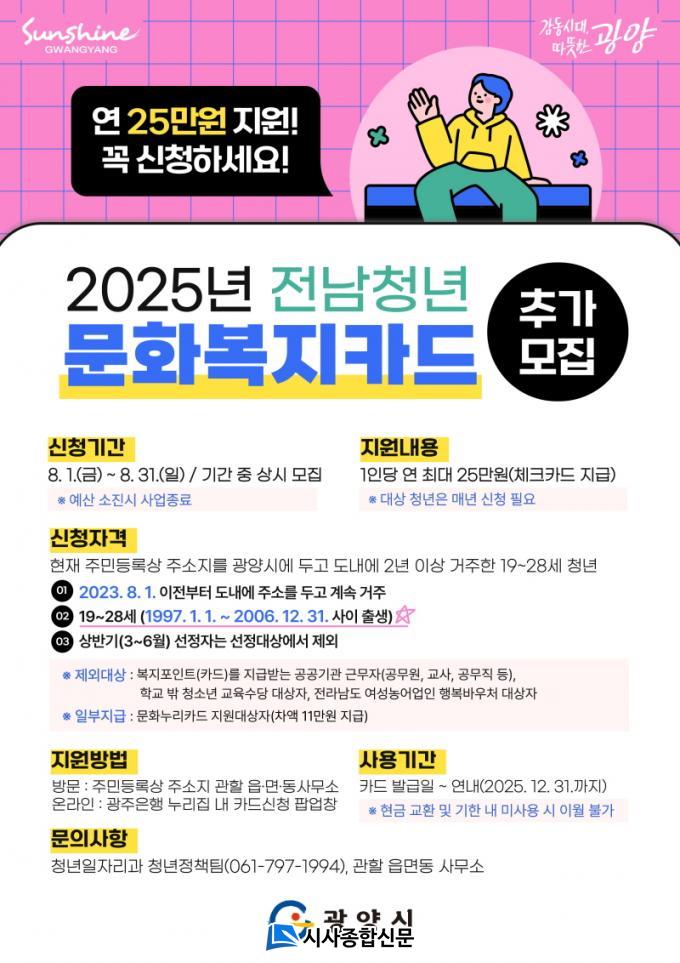 º¹ÁöÄ«µå´Â üũīµå·Î ¹ß±ÞµÇ¸ç, Áö¿ø±ÝÀº Ä«µå ³» Æ÷ÀÎÆ®·Î Áö±ÞµÈ´Ù. Áö¿ø±ÝÀº °ø¿¬ °ü¶÷, Çпø ¼ö°, µµ¼ ±¸ÀÔ, ¿©Çà, üÀ°½Ã¼³ ÀÌ¿ë µî ¹®È Ȱµ¿À̳ª Àڱ⠰è¹ßÀ» À§ÇØ »ç¿ëÇÒ ¼ö ÀÖÀ¸¸ç, »ç¿ë ±âÇÑÀº 2025³â ¿¬¸»±îÁö´Ù. ´Ü, ÇöÀå °áÁ¦¸¸ °¡´ÉÇϰí, »ç¿ë Áö¿ªÀº Àü¶ó³²µµ ³»·Î Á¦ÇѵȴÙ.