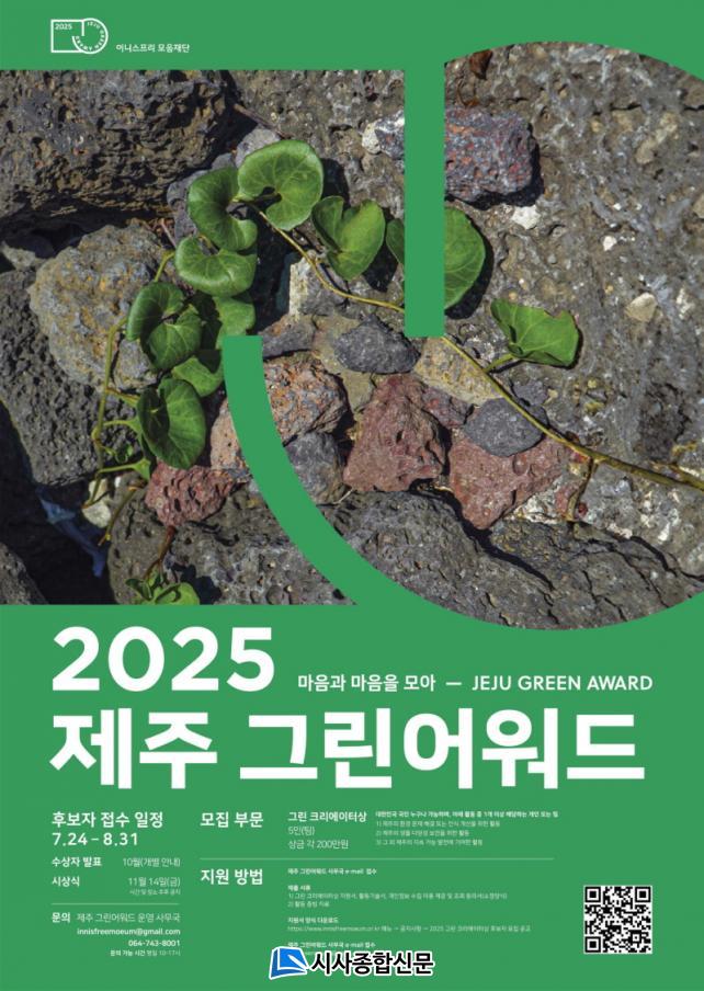 À̹ø 2025 Á¦ÁÖ ±×¸°¾î¿öµå´Â 3°³ ºÎ¹®¿¡¼ ¼ö»óÀÚ¸¦ ¼±¹ßÇϸç, ÃÑ»ó±ÝÀº 2000¸¸¿ø ±Ô¸ð´Ù. ½Ã»ó ºÎ¹®Àº ¡âÁ¦ÁÖ Ç츮ƼÁö °úÇлó(1ÀÎ, 500¸¸¿ø) ¡âÁ¦ÁÖ Ç츮ƼÁö °ø·Î»ó(1ÀÎ, 500¸¸¿ø) ¡â±×¸° Å©¸®¿¡ÀÌÅÍ»ó(5ÀÎ/ÆÀ, °¢ 200¸¸¿ø)À¸·Î ±¸¼ºµÈ´Ù.
