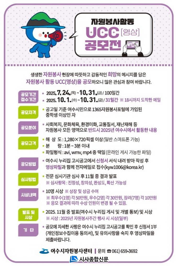 À̹ø °ø¸ð´Â ¿©¼ö Áö¿ª¿¡¼ 2025³â Ȱµ¿ÇÑ ³»¿ëÀ» ¿µ»óÀ¸·Î Á¦ÀÛÇØ ÀÀ¸ðÇÏ´Â ¹æ½ÄÀ¸·Î »çȸº¹Áö, ¹®ÈüÀ°, ȯ°æ¹ÌÈ, ±³ÅëÁú¼, Àç³ÀçÇØ µî ÀÚ¿øºÀ»ç ¸ðµç ºÐ¾ß¸¦ ´ë»óÀ¸·Î ÇÑ´Ù.