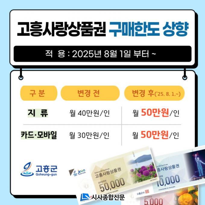 | °íÈﱺ, ¡®°íÈï»ç¶û»óǰ±Ç¡¯ ¿ù ±¸¸ÅÇѵµ 100¸¸ ¿ø ´ëÆø »óÇâ ¿ù ÃÖ´ë 70¸¸ ¿ø ⇨ ¿ù 100¸¸ ¿øÀ¸·Î º¯°æ, ¼Ò»ó°øÀÎ ¸ÅÃâÁõ´ë¡¤¼ÒºñÁøÀÛ ±â´ë