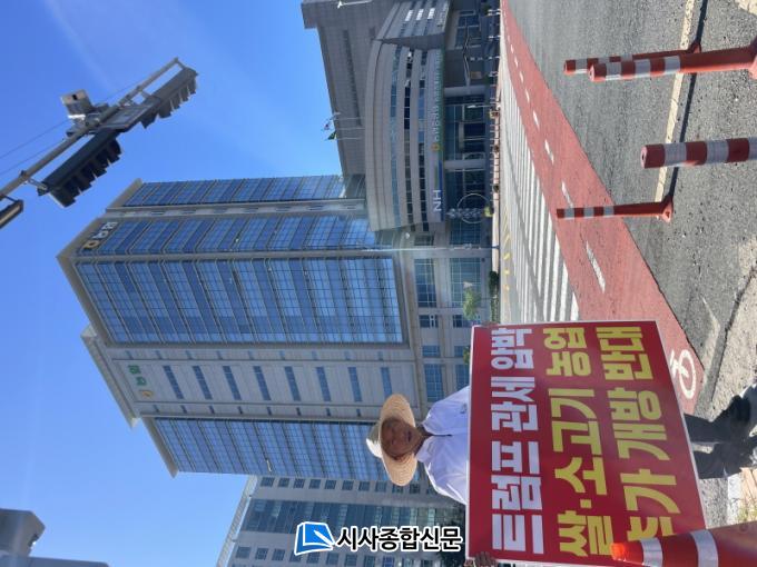 | ¹ÚÇü´ë Àü³²µµÀÇ¿øÀÌ 28ÀÏ Àü³²µµÃ» ¾Õ¿¡¼ ¡®Æ®·³ÇÁ °ü¼¼ ¾Ð¹Ú ½Ò¡¤¼Ò°í±â ³ó¾÷Ãß°¡°³¹æ ¹Ý´ë¡¯¹®±×°¡ ÀûÈù ÇÇÄÏÀ» µé°í 1ÀÎ ½ÃÀ§¸¦ ¹úÀ̰í ÀÖ´Ù. |
