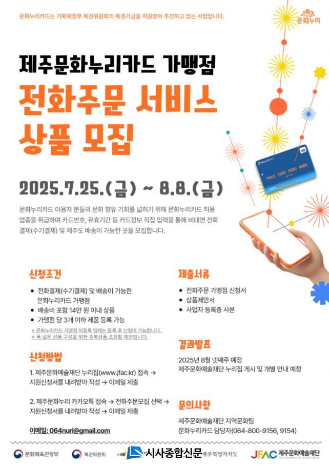| Á¦ÁÖ¹®È¿¹¼úÀç´Ü, ¹®È´©¸®Ä«µå¡®ÀüÈÁÖ¹® ¼ºñ½º¡¯Âü¿© °¡¸ÍÁ¡ ¸ðÁý °Åµ¿ÀÌ ºÒÆíÇÑ ÀÌ¿ëÀÚ¸¦ À§ÇÑ ÀüÈÁÖ¹® °¡¸ÍÁ¡ È®´ë ¿î¿µ Âü¿© °¡¸ÍÁ¡ 8¿ù 8ÀÏ(±Ý)±îÁö Á¢¼ö