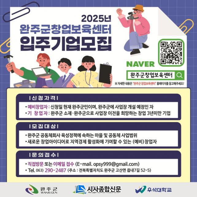 ÀÚ¼¼ÇÑ ³»¿ëÀº ¿ÏÁÖ±º â¾÷º¸À°¼¾ÅÍ È¨ÆäÀÌÁö(https://wj-changup.wanju.go.kr) ¶Ç´Â ¿ÏÁÖ±º â¾÷º¸À°¼¾ÅÍ(063-290-2487~8) ÀüÈ ¹®ÀǸ¦ ÅëÇØ È®ÀÎÇÒ ¼ö ÀÖ´Ù.