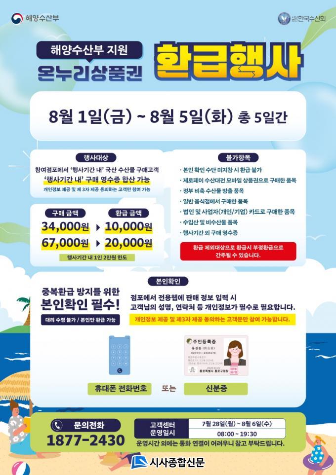 ´ëÀνÃÀå¼ 8¿ù 1~5ÀÏ ¼ö»ê¹° ±¸¸Å ½Ã ÃÖ´ë 2¸¸ ¿ø ȯ±Þ