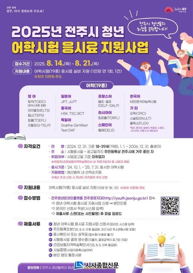 Áö¿ø ´ë»óÀº ¹ÌÃë¾÷ û³â(1985~2006³â»ý) Áß ½ÃÇè ÀÀ½ÃÀϺÎÅÍ »ç¾÷ °ø°íÀϱîÁö ÀüÁֽÿ¡ Áֹεî·ÏÀÌ Àִ û³âÀÌ´Ù. ´Ü, °Ç°º¸Çè Á÷Àå°¡ÀÔÀÚ ¹× »ç¾÷ÀÚµî·Ï º¸À¯ÀÚ´Â Á¦¿ÜµÇ¸ç, ÀÛ³â 10¿ùºÎÅÍ ¿ÃÇØ 7¿ù »çÀÌ¿¡ ÀÀ½ÃÇÑ 19Á¾ÀÇ ¾îÇнÃÇè¿¡ ´ëÇØ Áö¿øÀÌ °¡´ÉÇÏ´Ù.