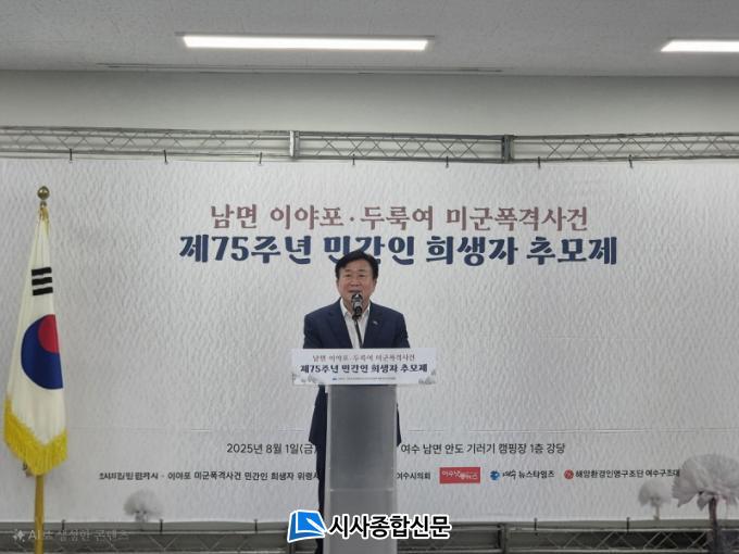 Á¤±â¸í ¿©¼ö½ÃÀåÀº ¡°75³âÀ̶ó´Â ±ä ¼¼¿ù µ¿¾È °íÅëÀ» °¡½¿¿¡ ¹¯°í »ì¾Æ¿À½Å À¯°¡Á· ¿©·¯ºÐ²² ±íÀº À§·ÎÀÇ ¸»¾¸À» ÀüÇÑ´Ù¡±¸ç ¡°¿©¼ö½Ã´Â À̵éÀÇ ¾ÆÇÄÀ» ¿Ü¸éÇÏÁö ¾Ê°í, Áø½Ç ±Ô¸í°ú ¿ª»çÀû º¹¿øÀ» À§ÇÑ ³ë·ÂÀ» ³¡±îÁö À̾°Ú´Ù¡±°í ¹àÇû´Ù.
