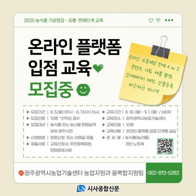 ¸ðÁý ´ë»óÀº ³ó½Äǰ ¶Ç´Â ³ó»ê¹°ÀÇ ¿Â¡¤¿ÀÇÁ¶óÀÎ ÆÇ¸Å ½ÇÀûÀÌ ÀÖ´Â ±¤ÁֽùÎÀ¸·Î ¼±Âø¼ø 10¸íÀ» ¸ðÁýÇÑ´Ù. ½ÅûÀº ¿À´Â 4ÀÏ ¿ÀÀü 9½ÃºÎÅÍ 13ÀÏ ¿ÀÈÄ 4½Ã±îÁöÀ̸ç, ³ó¾÷±â¼ú¼¾ÅÍ ³ó¾÷Áö¿ø°ú(1Ãþ)¸¦ ¹æ¹®Çϰųª ÀüÀÚ¿ìÆíÀ¸·Î Á¢¼öÇÏ¸é µÈ´Ù.