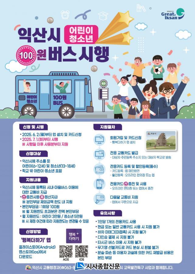 ÀÍ»ê½Ã´Â Áö³ÇغÎÅÍ ½ÃÇàÇÑ ¾î¸°ÀÌ 100¿ø ¹ö½º ¿ä±ÝÁ¦¸¦ ¿ÃÇØ 7¿ùºÎÅÍ Ã»¼Ò³â±îÁö È®´ëÇÑ ¹Ù ÀÖ´Ù. ¾î¸°ÀÌ´Â ÃÖ´ë ¿ù 3¸¸ ¿ø, û¼Ò³âÀº ÃÖ´ë ¿ù 5¸¸ ¿ø±îÁö ±³Åëºñ¸¦ Áö¿ø¹Þ´Â´Ù. Ÿ Áö¿ª ¹ö½º¸¦ ÀÌ¿ëÇϰųª, ´ÙÀν °áÁ¦, ÇÏÂ÷½Ã ´Ü¸»±â ¹ÌÁ¢ÃË µîÀº Áö¿ø¿¡¼ Á¦¿ÜµÇ´Â ¸¸Å ÁÖÀǰ¡ ÇÊ¿äÇÏ´Ù.