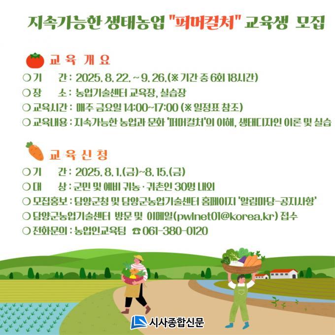 ¸ðÁý ´ë»óÀº ´ã¾ç±º¹Î°ú ¿¹ºñ ±Í³ó¡¤±ÍÃÌÀÎÀ¸·Î, 8¿ù 15ÀϱîÁö ¼±Âø¼ø 30¸íÀ» ¸ðÁýÇÑ´Ù. ½ÅûÀº ³ó¾÷±â¼ú¼¾Å͸¦ Á÷Á¢ ¹æ¹®Çϰųª À̸ÞÀÏ(pwlnet01@korea.kr)·Î Á¢¼öÇÏ¸é µÈ´Ù.