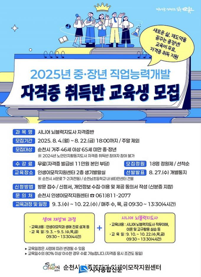 ¼øÃµ½Ã °ü°èÀÚ´Â ¡°À̹ø ÀÚ°ÝÁõ¹ÝÀÌ ÀçÃë¾÷À» °í¹ÎÇÏ´Â Áß¡¤Àå³âÃþ¿¡°Ô ½ÇÁúÀûÀÎ µµ¿òÀÌ µÇ±â¸¦ ¹Ù¶õ´Ù¡±¸ç ¡°¾ÕÀ¸·Îµµ ´Ù¾çÇÑ Àλý 2¸· Áغñ ÇÁ·Î±×·¥À» È®´ëÇØ ³ª°¡°Ú´Ù¡±°í ¸»Çß´Ù.