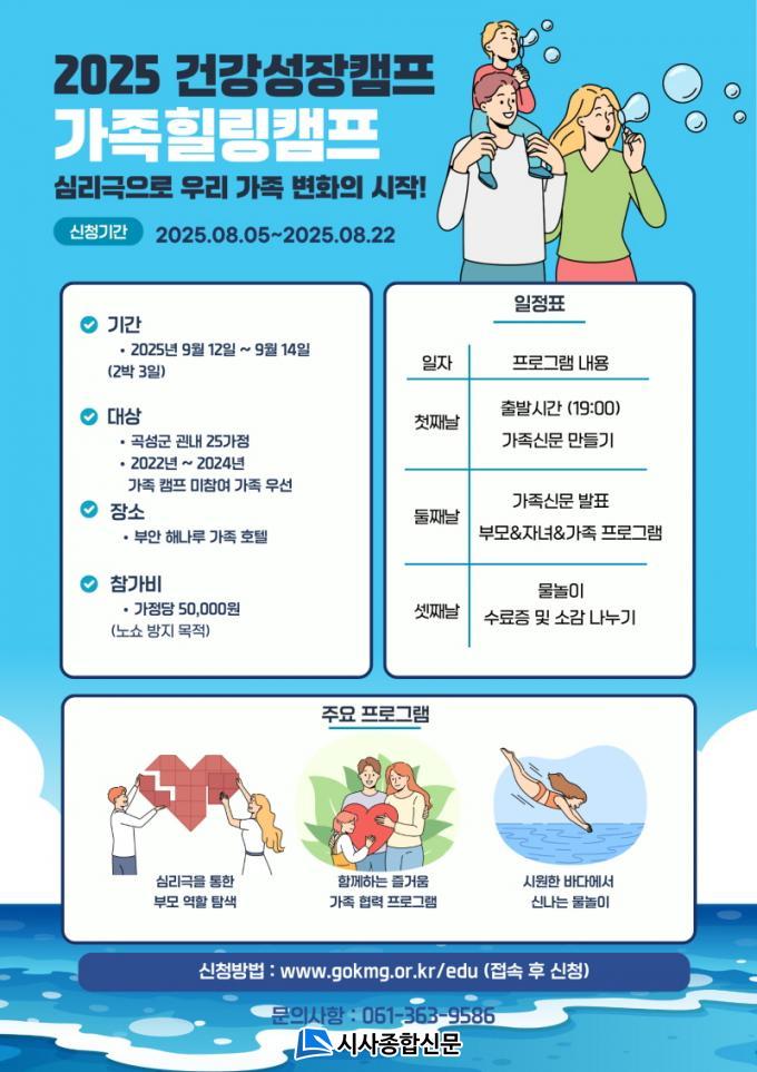 [½Ã»çÁ¾ÇսŹ® = ¿À½ÂÅà ±âÀÚ] °î¼º±º¹Ì·¡±³À°Àç´ÜÀº Á÷Á¢ ÁÖÃÖÇÏ°í °î¼º±ºÃ»¼Ò³â»ó´ãº¹Áö¼¾ÅͰ¡ ÁÖ°üÇÏ´Â '°¡Á·Èú¸µÄ·ÇÁ'°¡ 9¿ù 12ÀϺÎÅÍ 14ÀϱîÁö 2¹Ú 3Àϰ£ °³Ãֵȴٰí 7ÀÏ ÀüÇß´Ù.