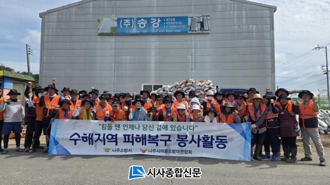 ³ªÁÖ½ÃÀÇ¿ë¼Ò¹æ´ë´Â ¾Õ¼ Áö³ 7¿ù 31ÀÏ¿¡´Â ´ã¾ç±º °í¼¸é ÀÏ¿ø¿¡¼ 30¿© ¸íÀÇ ÀÇ¿ë¼Ò¹æ´ë¿øµéÀÌ Âü¿©ÇØ ³ó°æÁö Åä»ç Á¦°Å¿Í ³ó°¡ ½Ã¼³ Á¤ºñ µî ¼öÇØº¹±¸ Ȱµ¿À» Àü°³Çϸç ÇÇÇØ ÁֹεéÀÇ ºü¸¥ »ýȰ ¾ÈÁ¤À» À§ÇØ ±¸½½¶¡À» È기 ¹Ù ÀÖ´Ù.