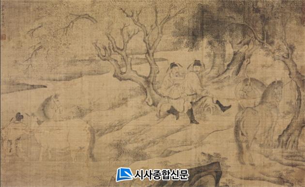 ¸»À» ¸Å¾îµÎ°í ³ª¹« ¹Ø¿¡¼ ÈÞ½ÄÀ» ÃëÇÏ´Â µÎ ¸íÀÇ °ü¸®¿Í °¿¡¼ ¸»À» ¸ñ¿å½ÃŰ´Â ¸¶ºÎ¸¦ ¼ÒÀç·Î ÇÑ ±×¸²Àº ÇöÀüÇÏ´Â °øÀçÀÇ ¸» ±×¸² Áß ±Ô¸ð°¡ °¡Àå Å©´Ù.